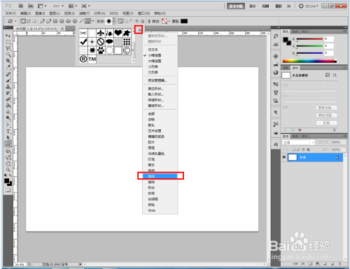 点击图示小三角-【物体】,追加物体图案到选择形状选项栏中;