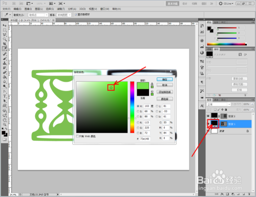 双击沙漏图层前面的色块,将沙漏图案设置为我们需要的颜色即可。