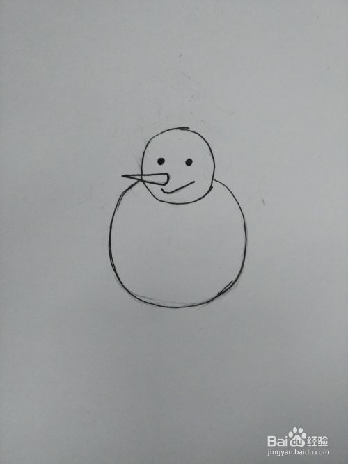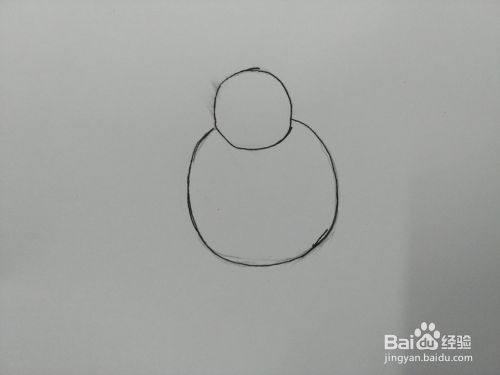 在小圆圈的正面,再画一个大大的圆圈,这个圆圈是小雪人的身体。