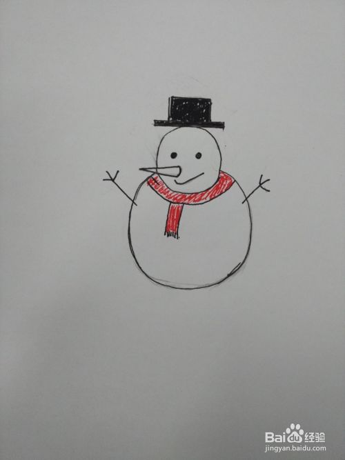 最后就是在小雪人的头上画上一顶帽子,看,可爱的小雪人就画好啦。然后可以上色