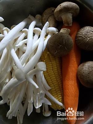 把胡萝卜削皮,食材全部清洗干净,胡萝卜,玉米切成小块备用