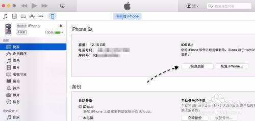 接着在设备的摘要管理界面中,请点击【检查更新】按钮,如图所示