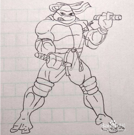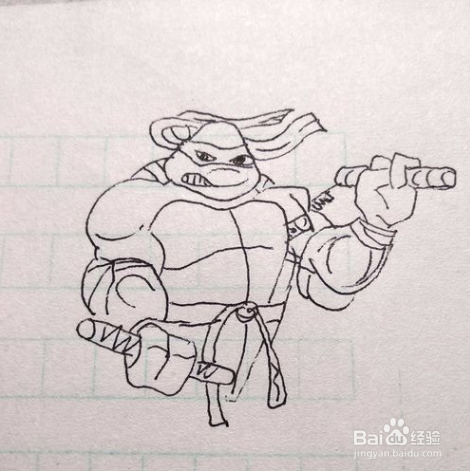 忍者神龟是非常出名的动漫人物,今天就让我来教大家如何用简单的方法画帅气的忍者神龟吧!