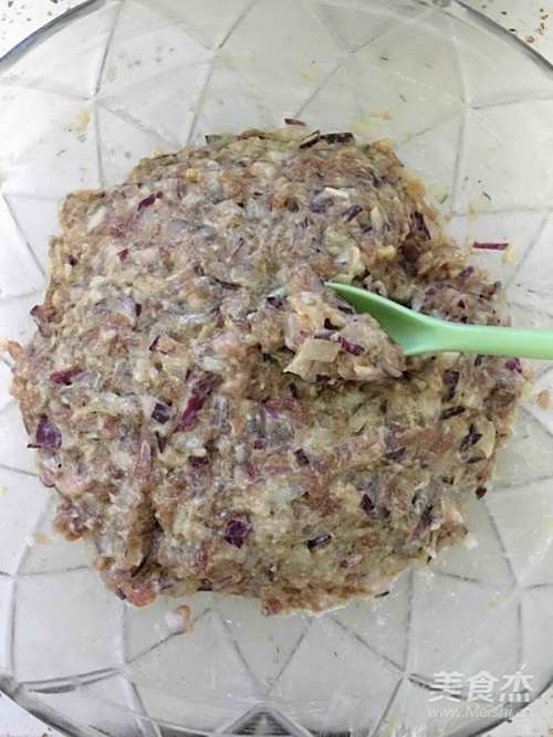 将羊肉于圆葱搅拌均匀即可。