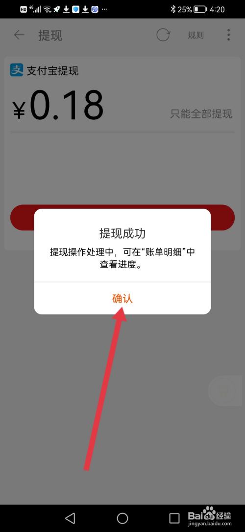 然后弹出提现成功,点击【确槐宿认】光联即可。