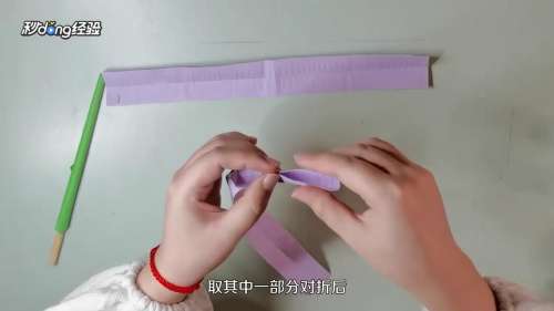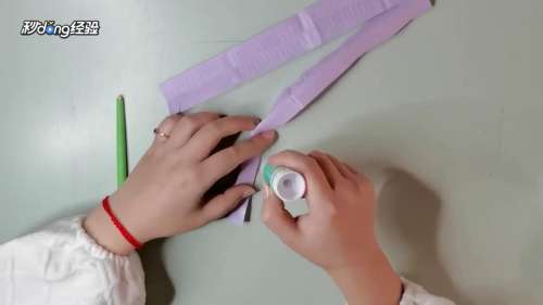 2将绿色彩纸粘贴在筷子上。