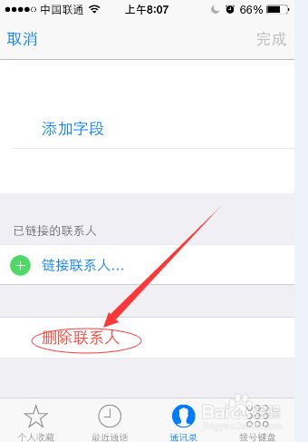 第四步 我们进入后拉到最下方点击 删除联系人 即可。