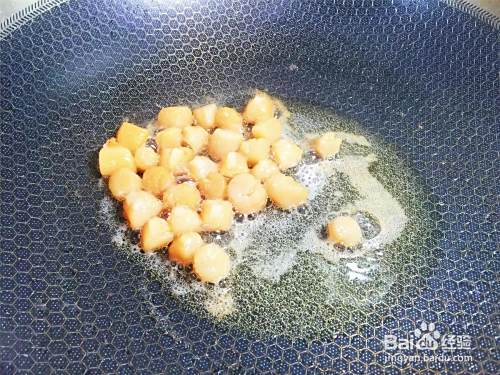 5个。在冷油锅里,加入扇贝和蒜泥,翻炒出香味。