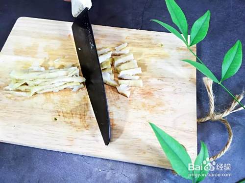 一。羊尾笋用水浸泡,拔出盐,撕成细丝,切成段备用。
