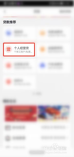 点击贷款进入贷款界面,找到【个人经营贷】。