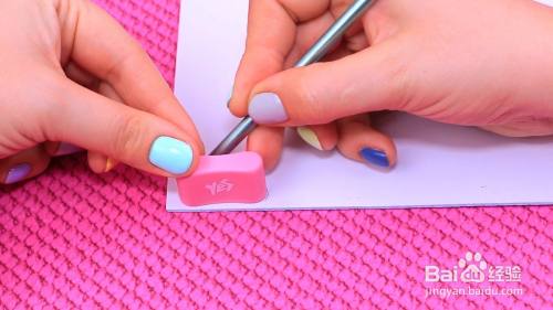 再使用一个长方形泡沫片的把橡皮完全包裹住。