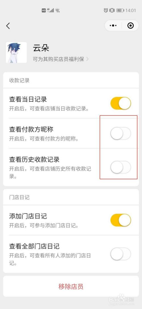 第五步打开该店员查看历史收款记录权限,保存即可。