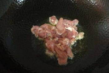 炒锅中放入适量食用油,油热后将猪肉片放入锅中;