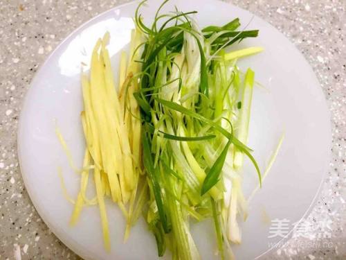 3葱,姜分别切丝。