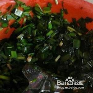 调菜,把韭菜放入盆中加食用油,香油,十三香,盐调匀