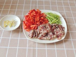 芹菜择洗干净后切段,香肠斜切成片,红椒切成小片,葱姜切丝