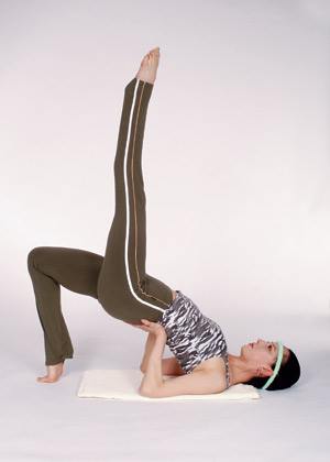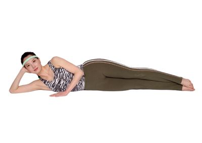 4慢慢呼气,身体落下还原到仰卧姿势,再重复做一遍
