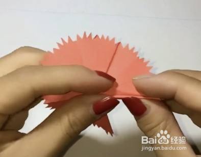 接着把手工纸展开,剪刀剪开花朵至中心点。