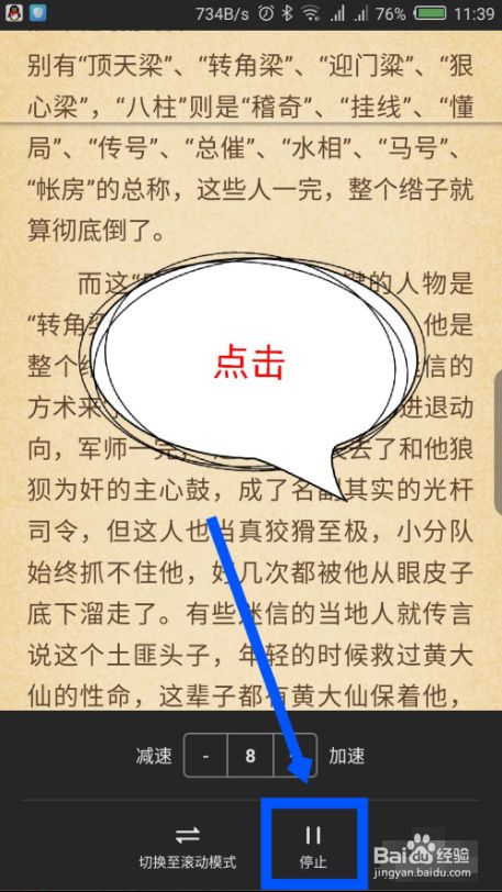 如果想退出自动阅读模式,点击右下角的停止,就会退出自动阅读。