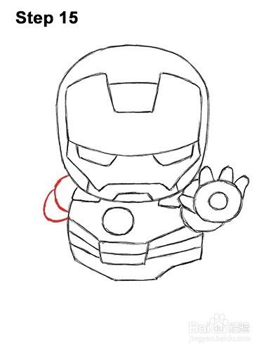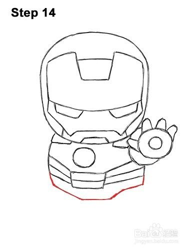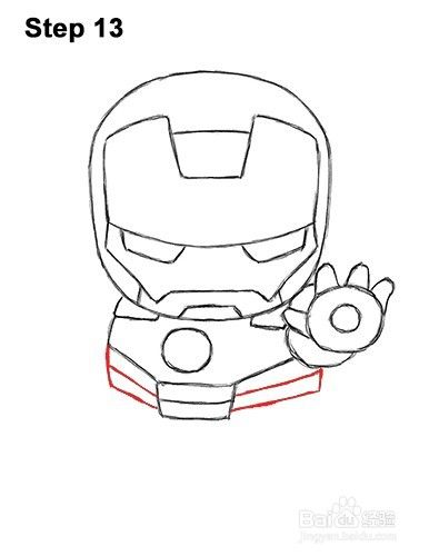 第11步:在反应堆下方画出装甲的胸板部分。赤壁钢铁侠的胸板由反应器下方的水平线连接的两侧对角线组成。