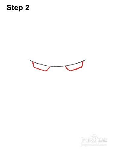 步骤4:现在,首先在每只眼睛旁画一条短对角线,然后添加钢铁侠面盘的底部。现在在两边绘制一条较长的弯曲对角线。这些线应该指向底部的内部。在两边和一条水平线上绘制一条短的对角线,以缩小中间的距离。