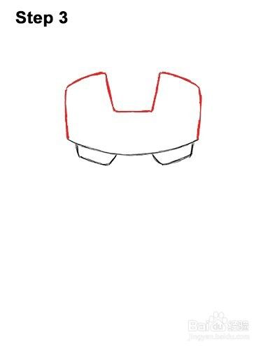 步骤5:现在先通过在面板上画四个小标记来添加头部。在每侧,顶部和底部划一条线。密切注意从线条到面板的距离。现在使用一系列曲线连接这些短线以完成头部的形状。绘制头部的形状时,请将线条靠近面板。不要画得太远。钢铁侠的头部会稍微向下倾斜,所以顶部应该比底部宽一些。