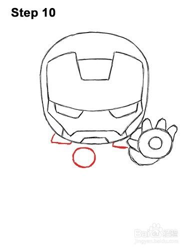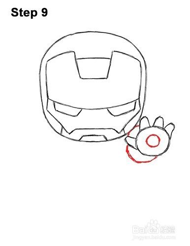 第7步:在头部的右下侧,为手掌画一个小的宽圆圈。不要将圈子靠近赤壁钢铁侠的头部。他们的边缘不应该碰。