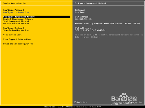 进行网络的相关设定,选择『Configure Managerment Network』后,按键盘『Enter』。