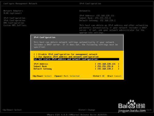 设置 IP (因为之后需要使用VMware vSphere Client 来做连线),选择『IPv4 Configuration』后,按键盘『Enter』。