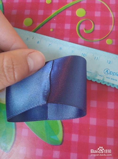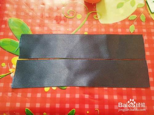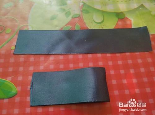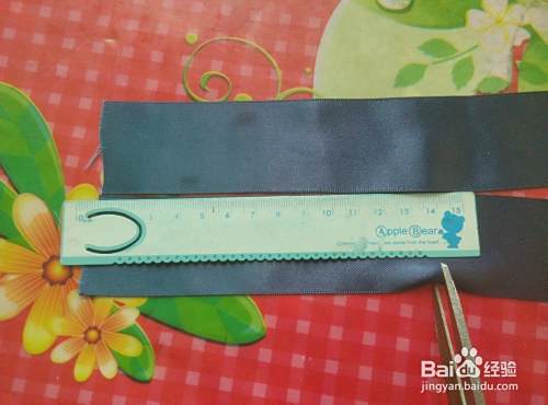 用尺子量取两节14cm左右的缎带(喜欢大花的美美可以取长一些,如18cm),将两端在火上了一下,防止制作过程中缎带拉丝。