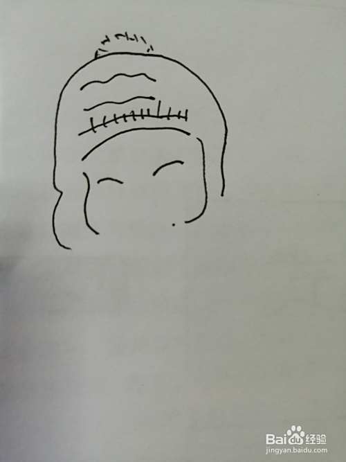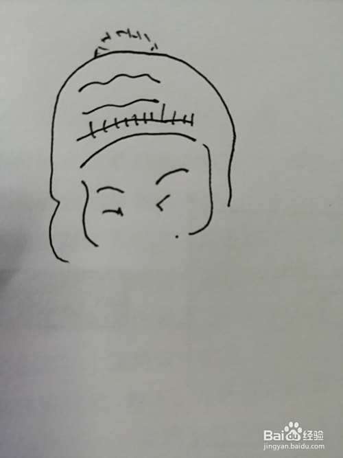 第二步,接着继续画出小孩的弯弯的眉毛和可爱的眼睛,画法比较简单。