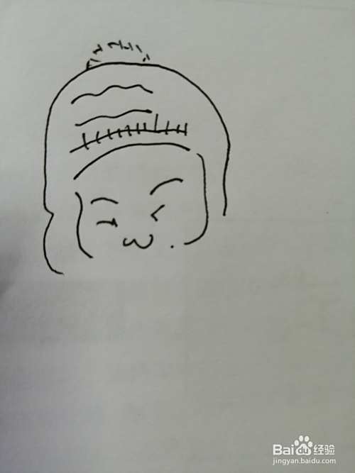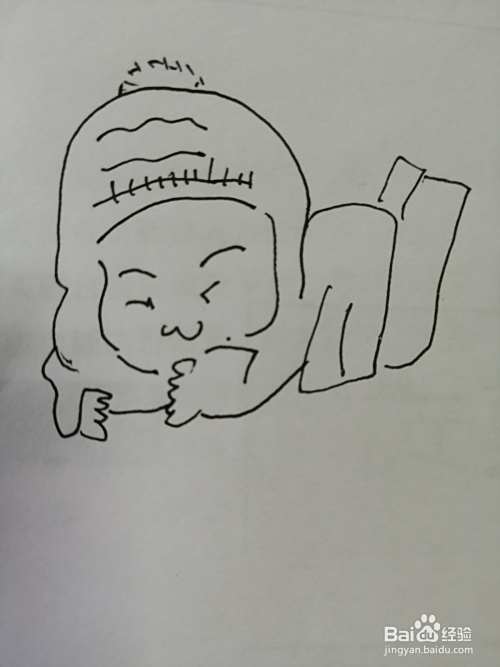 第一步,我们先把戴帽子的小孩的帽子画出来,注意帽子上细节的画法。