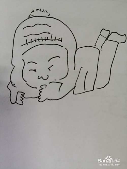 第七步,最后把小孩的两只鞋子画出来。可爱的小孩就画好了。