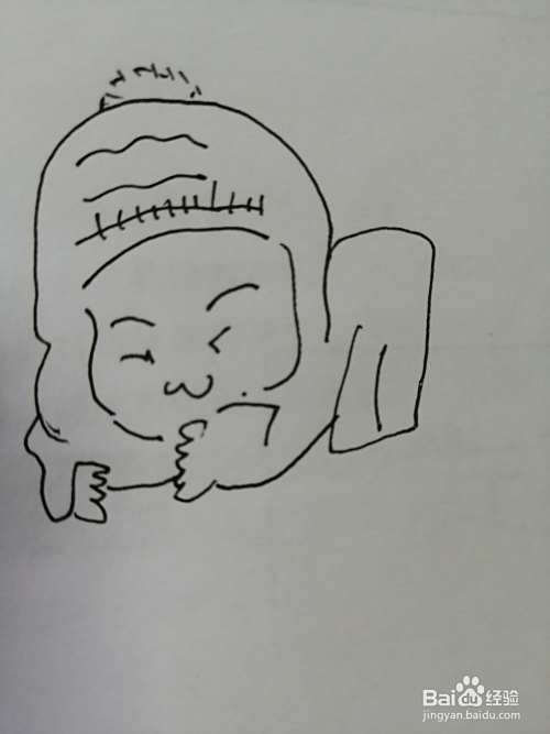 第五步,然后继续画出小孩的身体,小孩的身体画法也比较简单。