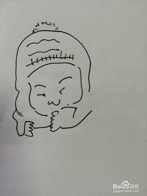 第三步,然后继续画出小孩的小嘴巴,注意小嘴巴弧线的画法。