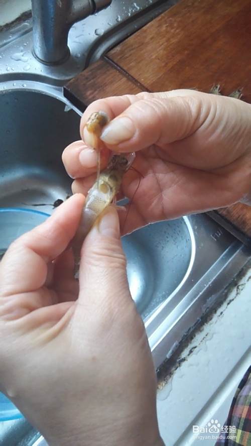 先处理虾,把虾头里的脏东西挤出,拉出虾线