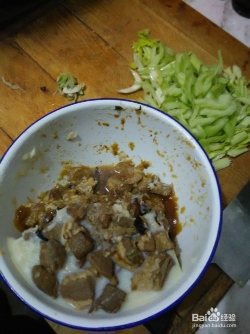 将芹菜洗净,切成片,葱切成丝,把肉拿出来,稍微化开一点,比较容易铲动。