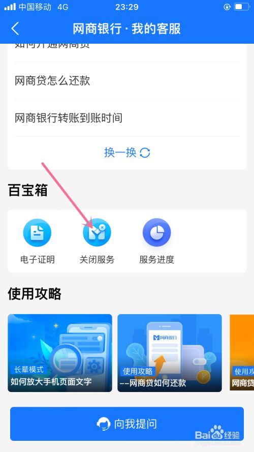 随后切换到网商银行·我的客服的页面点击“关闭服务”选项