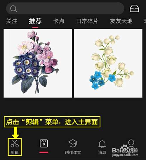 图文成片。点击“剪辑”主界面顶部的“图文成片”。