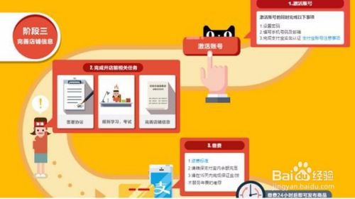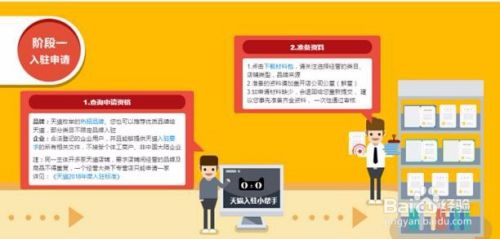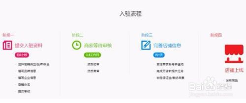 首先,在天猫开店需要四个流程,分别为阶段一:提交入驻资料;阶段二:商家等待审核;阶段三:完善店铺信息;阶段四:店铺上线。下面小编分别讲一讲这四个阶段。