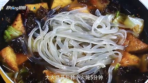 4加入开水和粉条炖5分钟。