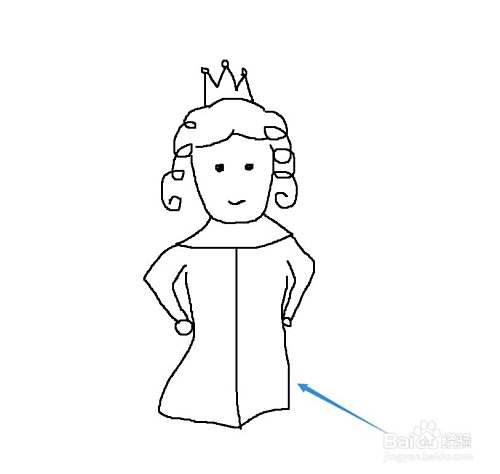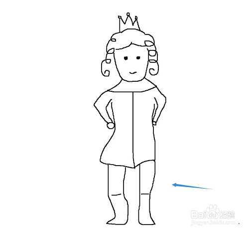 接着画出王子的衣服,看起来要大气,这里简单地画出了3笔,看起来有些像风衣。