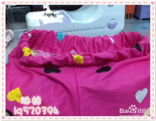 把裤子的腰部折叠好,比松紧带宽点的空间,然后缝合好。