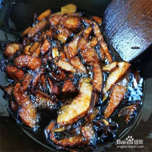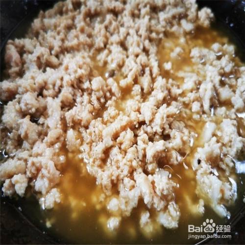 榨至焦黄色,把残渣捞出,下入切好的肉末。