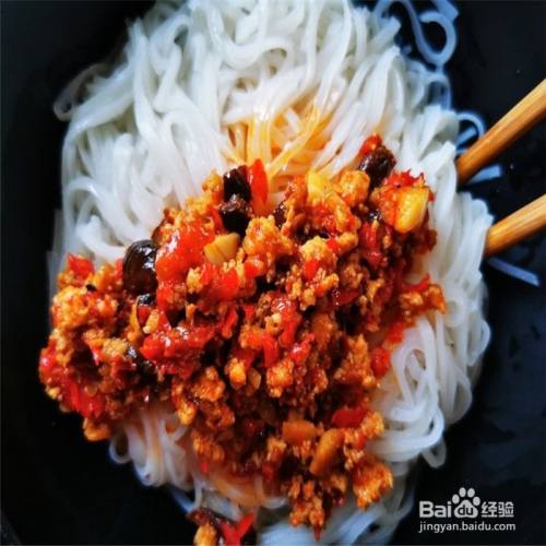 备好面条,倒上猪肉香菇辣椒酱,开吃!
