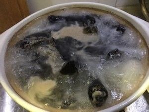 乌鸡一定要飞水,这样鸡汤不腥而且清澈。建议水快开时开盖,水沸后10到30秒关火,鸡越新鲜秒数越少。