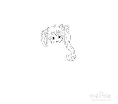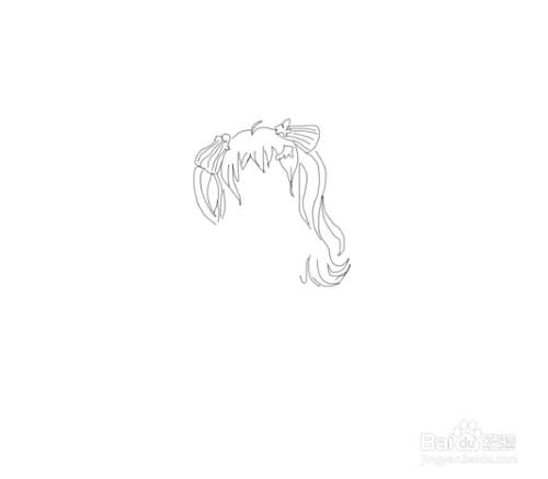 首先画出小女孩的头发,然后再在头发的基础上再画出小女孩头发两侧的辫子,如图所示: