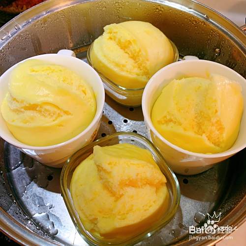 忘记拍一个蒸之前的图片??找几个稍微深一点的容器,倒入排空气泡的面粉糊,倒至容器的中间位置左右,然后静置15分钟,上凉水锅蒸,等到水开后,可以转为中强火??,蒸个8-10分钟左右就OK啦!具体看情况吧~会开花的发糕??