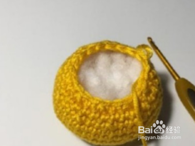 绕第5圈就要隔2针加1针钩完成的话总共就是32针短针,然后就成了半部分了在半部分里填充一些棉花并继续钩2针加1针。