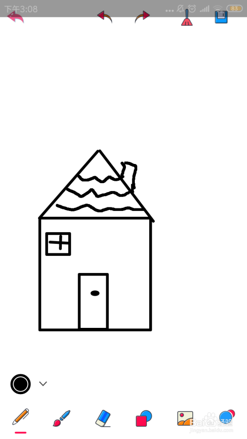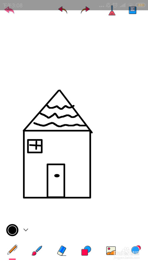 然后在房子的顶部,画一些波浪线,这是瓦。